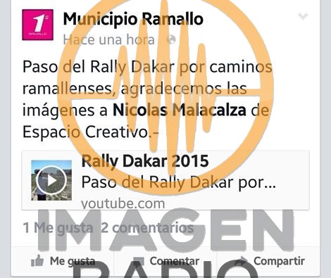 Municipio Ramallo desearía saber el motivo por el cual fue eliminada la publicación que uds. realizaron donde contaban el paso del Dakar por Ramallo( adjunto foto), y algunos vecinos comentamos que la misma podría haber hecho su recorrido por cualquier lugar de nuestro querido Partido ya que el estado actual de las mayorías de nuestras arterias son dignas de ser transitadas por este tipo de competencia donde el ser humano y la maquina en un genuino estado de supervivencia deben ser uno solo para poder sortear la misma.