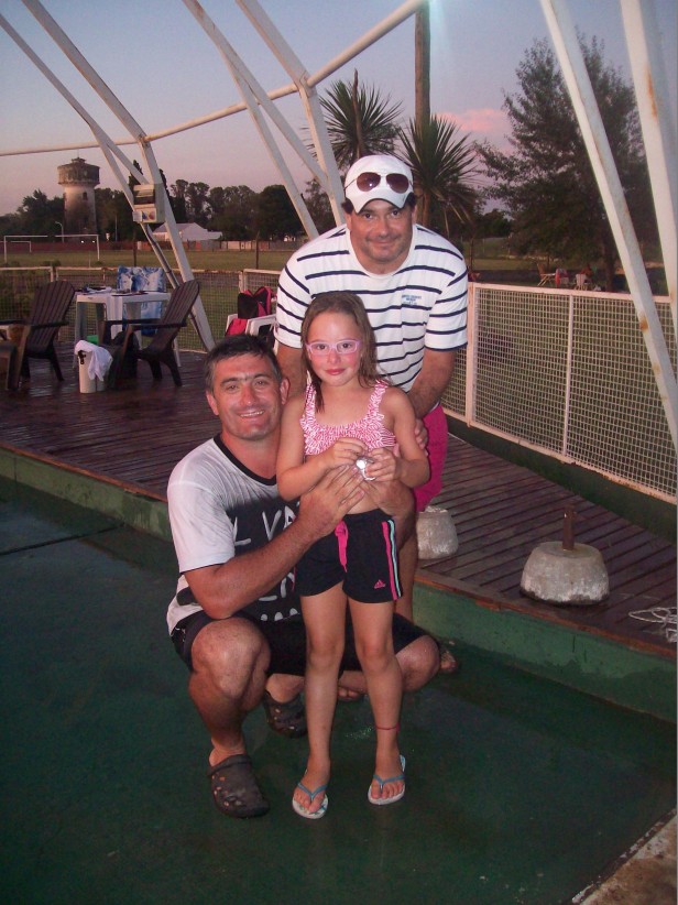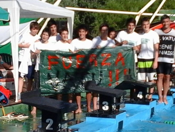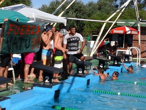 Finalmente este domingo, es su momento fue suspendida por el mal tiempo, se realizó la Maratón Acuática, doce horas ininterrumpidas de natación, en el natatorio del club Los Andes. La idea del organizador Diego Vergara, ex deportista y socio del club, era tener gente nadando durante doce horas desde las ocho de la mañana hasta las veinte horas, sin competencia, el desafió era que la pileta tuviera gente nadando en forma permanente y el objetivo se cumplió totalmente. Fueron 12 horas, 172350 metros, 6854 piletas de recorrido, realizado por 60 nadadores. Además de tener un sentido solidario, porque había que llevar un artículo de limpieza para el CEC 801 y ese cometido también se cumplió. Diego Vergara, en diálogo con La Radio Ramallo al finalizar la Maratón, decía: “No asustó un poco la lluvia de anoche, pero esta mañana (por el domingo) desde las siete, había como un ánimo de que hoy se tenía que hacer, después se iba a complicar porque la pileta tiene una agenda cargadísima, además queríamos hacerlo, gracias a Dios el clima acompaño y le gente ni hablar. Cuando lo estábamos organizando, en principio iba a ser de seis andariveles, finalmente lo hicimos en tres, no queríamos dejar al socio sin un pedacito de pileta, pensábamos en cincuenta mil metros, finalmente fueron más de ciento setenta mil metros, más de seis mil piletas, casi siete mil piletas, y muchos de nosotros, creo que ni en la época de nadadores hemos nadado tanto. A la mañana nos peleábamos para nadar, después del mediodía y las últimas dos horas fueron críticas, la gente estaba cansada, muchos de nosotros habíamos estado muchas horas al sol, yo viene a las siete, con todo lo que significa lo emotivo, a las ocho de la mañana, cuando se tiraron los tres primeros nadadores, cuando se tiraron José Santa Cruz, Ale Capridi y Juancito, mi hijo, algo me corrió, fue una emoción tremenda. No me quiero olvidar de estos momentos, no demasiado agradables que estamos pasando, lo tenemos a Valentín Metz internado en el Hospital San Felipe, por suerte saliendo de una situación complicada, que no debería haber sido tan complicada (lo picó una yarará), pero lo fue, vinieron los amiguitos de él a participar a la tarde, yo corrí prácticamente todas las series con una remera que dice el “Vatu viene conmigo”, yo soy amigo y compañero de trabajo del papá, son chicos que uno los vio nacer, chicos buenos , duele que estén pasando por esto y la gente se enganchó también en apoyarlos en este mal momento. También tuvo éxito la propuesta solidaría, la directora del CEC 801, Mónica Menchini vino compartir con nosotros, demás está decir que le agradecemos, y se llevó lo que le correspondía, que no fue poco. Quiero destacar el entusiasmo de los chicos que nadaron y vieron participar a sus padres, a Nilda Blanco, una señora grande que se tiró en cuatro o cinco oportunidades a hacer sus veinticinco o cincuenta metros, a Carolina Santa Cruz, nuestra nadadora, lesionada con una bota, que no iba a nadar y al final se tiro de la conejera y nado cincuenta metros, quiero agradecer a los que no van a estar en la foto final, pero que estuvieron, nadaron, asumieron un compromiso y lo cumplieron, algo sencillo, simple, pero que nunca se había hecho en Ramallo, ojala lo podamos volver a hacer y recorrer más metros de los que recorrimos hoy. Creo que los clubes de Ramallo mientras tengan gente como esta van a crecer, despacito, pero van a seguir creciendo”.