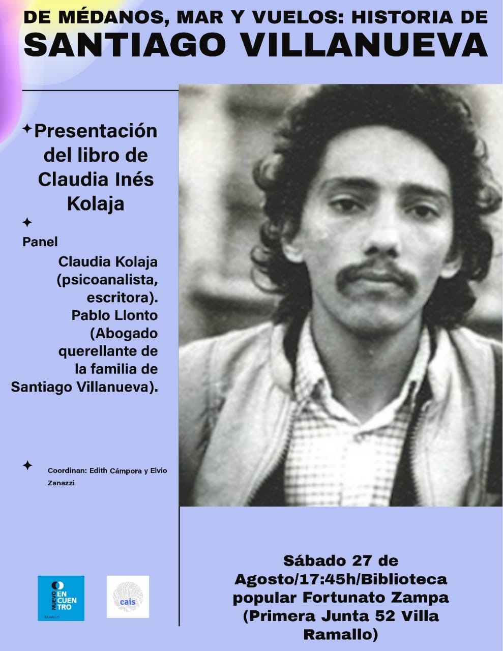 El escritor ramallense Elvio Zanazzi informó sobre la presentación del libro “De médanos, mar y vuelos: Historia de Santiago Villanueva” de Claudia Inés Kolaja.
