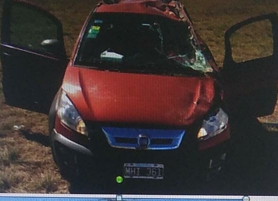 En tanto, unas horas más tarde, también el pasado sábado, en la ruta nacional 9 km 221, también por razones que se tratan de de establecer se produjo el vuelco de un automóvil color bordo marca Fiat modelo Idea conducido por un ciudadano mayor de edad de la localidad de Adolfo Alsina de la Ciudad Autónoma de Buenos Aires.