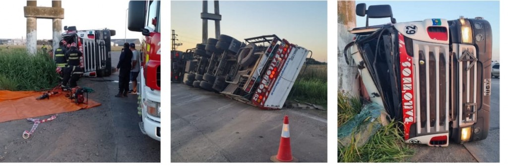 Personal del Puesto de Vigilancia de Villa General Savio informó que este sábado a las 5:40 hs. en rotonda Cabalén, intersección ruta provincial A087, por razones que se desconocen un camión perdió el control y volcó al costado del camino. El rodado que circulaba por la principal arteria que tiene el partido de Ramallo para el transito pesado era conducido por un joven de 26 años.
