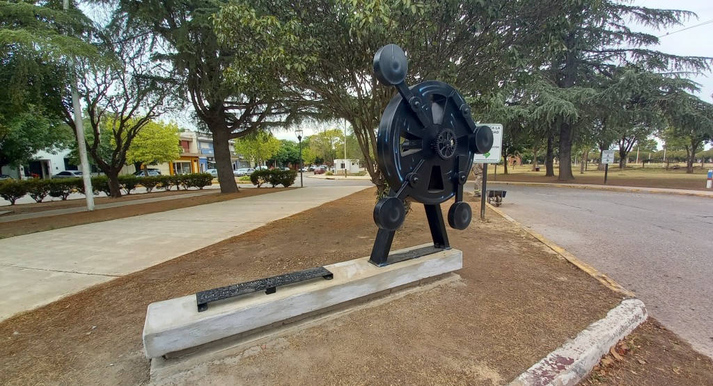 La escultura fue donada por la familia Menucci y se instaló frente a la estación de trenes de Villa Ramallo, donde funciona la Delegación municipal.