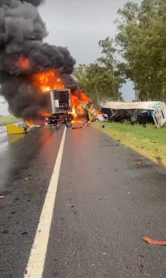 Este viernes aproximadamente 15:30 hs, por causas que se tratan de establecer, en ruta 51 (a la altura del cruce del camino conocido como La Sarita) antes de llegar a la localidad de Pérez Millán, colisionaron frontalmente dos camiones y uno se prendió fuego. Como resultado del siniestro falleció uno de los choferes.