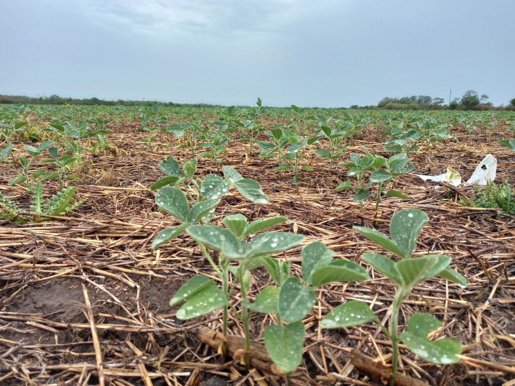 La imagen de uno de los lotes en camino de la costa muestra como se encuentra la soja que fue sembrada de manera tardía.