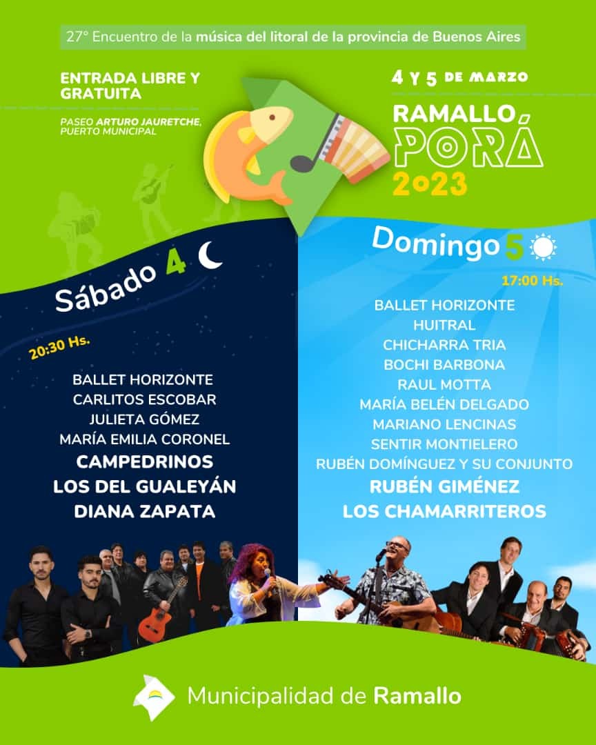 Desde la Dirección de Cultura Municipal informaron que el próximo 4 y 5 de marzo se realizará una nueva edición del Ramallo Porá en el puerto local.