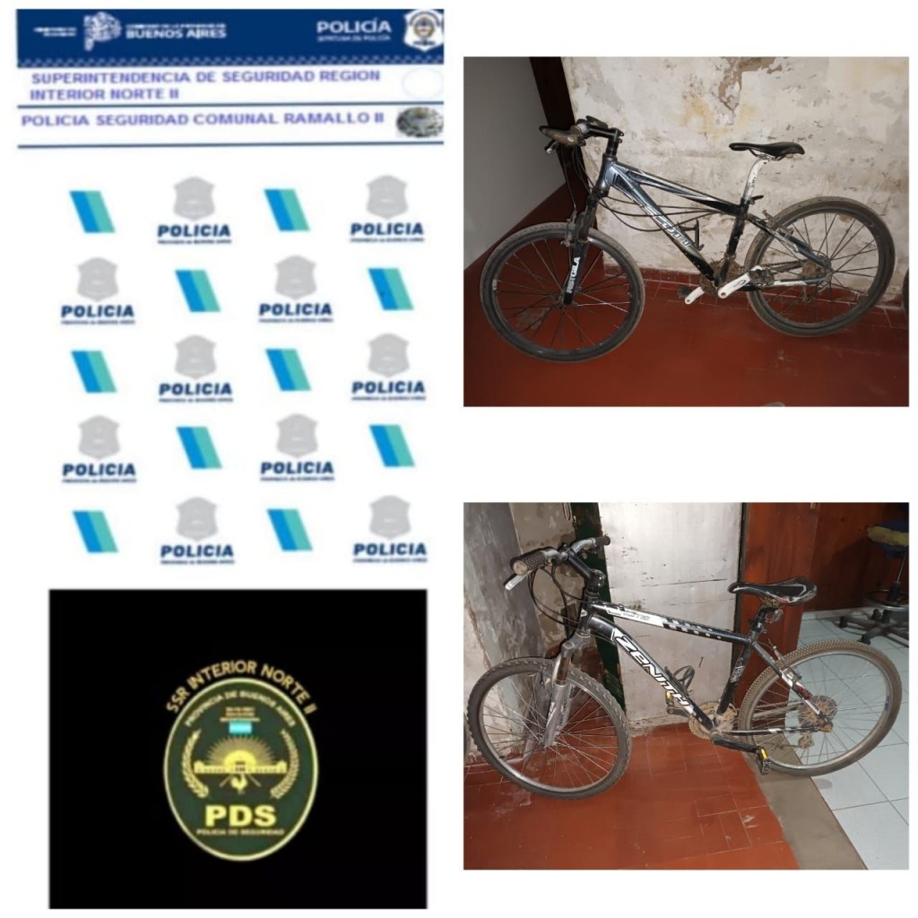 El grupo de tareas operativas se abocó a la búsqueda de los rodados y logró en calle Córdoba y Jujuy de Ramallo la aprehensión de menor de edad (15) quien se hallaba con las bicicletas sustraídas.