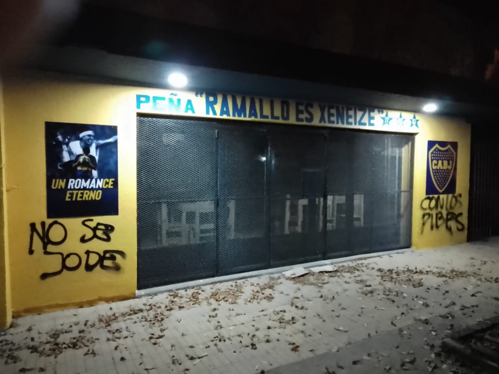 La peña oficial de Boca Juniors en el barrio Don Antonio fue víctima de un acto de vandalismo en la madrugada de hoy, cuando desconocidos pintaron con aerosol el frente del edificio.