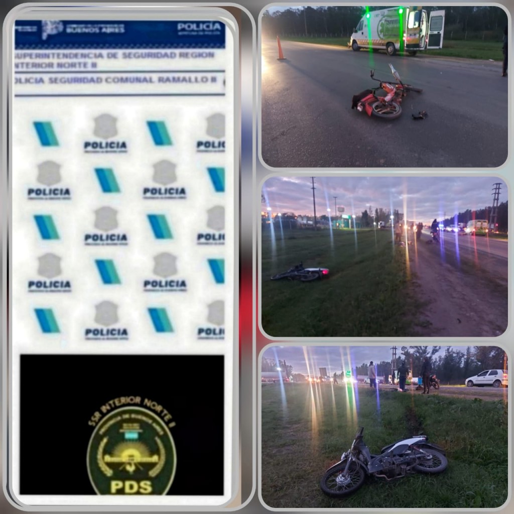 Dos motocicletas colisionaron en el kilómetro 4.5 del Camino de la Costa, sentido Ramallo-San Nicolás, resultando en lesiones para ambos conductores. La Policía Científica de San Nicolás y la U.F.I. Nro. 14 DJSN se encuentran investigando el incidente.