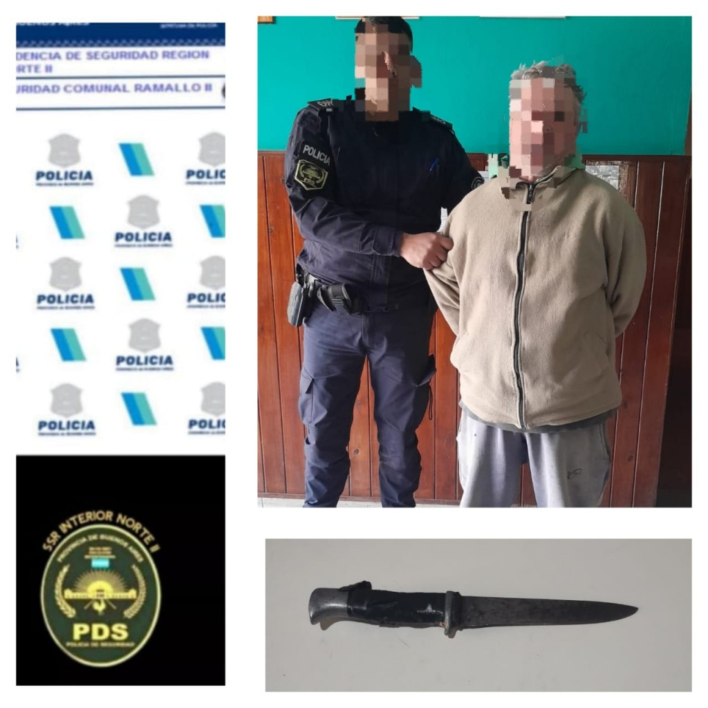 El pasado 5 de agosto, aproximadamente a las 10:30 de la mañana, personal policial de la Estación de Policía Comunal (EPC) Ramallo II se encontraba patrullando la zona de la Avenida Dusso y Kennedy cuando se encontraron con un hombre de 45 años ocasionando disturbios en la vía pública en estado de ebriedad. Ante la situación, procedieron a la aprehensión del sujeto y durante un cacheo preventivo, descubrieron que portaba una cuchilla con un cabo de hierro de 23 centímetros de largo. El hombre fue puesto a disposición del Juzgado de Paz de Ramallo para enfrentar cargos por infracción a los artículos 43, 72 y 74 de la Ley 8031/73.
