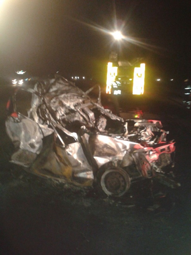 La información da cuenta que el auto de la marca Chery de la empresa de seguridad del Grupo San Miguel fue aprisionado entre los dos camiones y esto provocó la muerte de los dos ocupantes. Tras el choque el rodado de la firma china se incendió lo que provocó que los cuerpos quedaran calcinados.