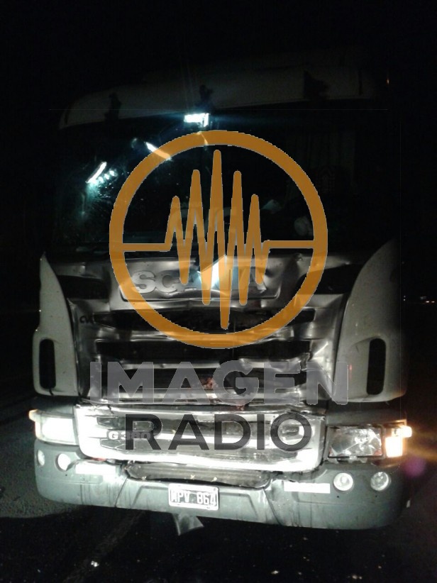 Personal policial de la Comisaría Segunda y de bomberos voluntarios informaron que este sábado en horas de la madrugada un camión que transportaba atún y se dirigía a la provincia de Córdoba embistió en el kilómetro 212 de la ruta 9 --a la altura de la estación de servicio YPF que se encuentra en ese sector del partido de Ramallo-- a un vehículo que realizaba la custodia de un transporte de la empresa Andreani.