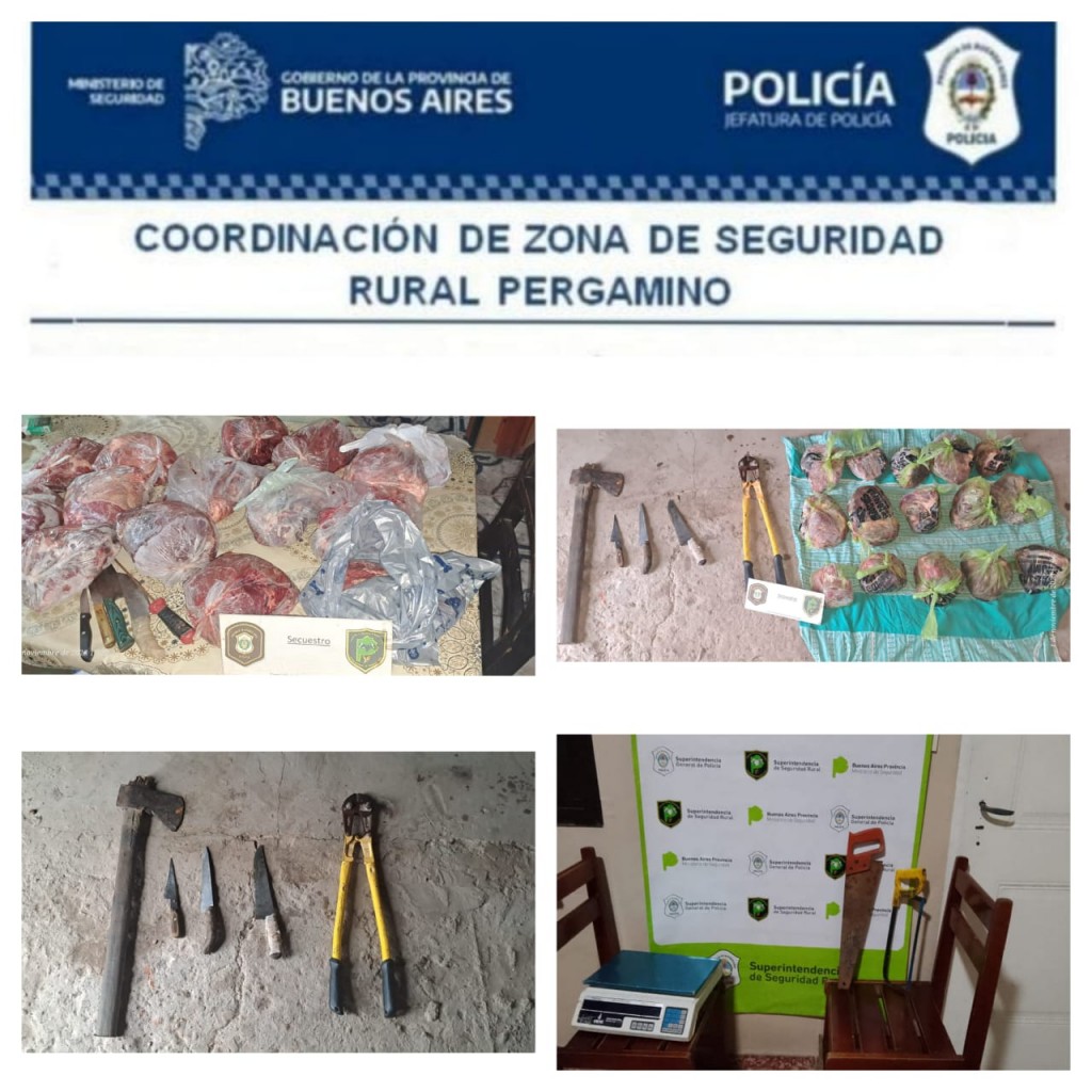 En el segundo objetivo, las residencias de dos hermanos en Cortada Cortázar, se hallaron 100 kilogramos de carne vacuna en varios cortes, además de sogas y cuchillos. La carne fue entregada bajo custodia legal, y se procedió a la detención quienes enfrentan cargos en el marco de la investigación.