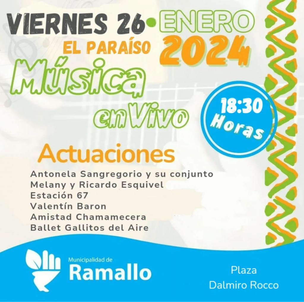 La municipalidad de Ramallo invita a participar de un fin de semana a pura música y deportes en las localidades de Villa General Savio y El Paraíso.