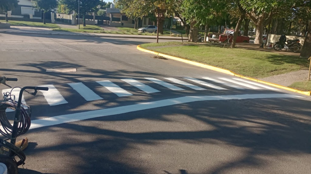 En el marco de los trabajos diarios de la cuadrilla municipal, la Secretaría de Obras y Servicios Públicos, realiza trabajos de pintado de sendas peatonales y ochavas en diferentes establecimientos educativos, con el objetivo de dar ordenamiento a los flujos vehiculares, y fundamentalmente brindar seguridad a los peatones.