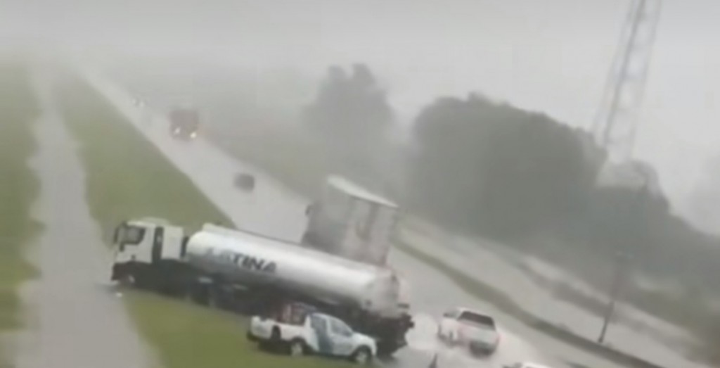 Captura de video de como se encontraba la ruta 9 a la altura de San Nicolás