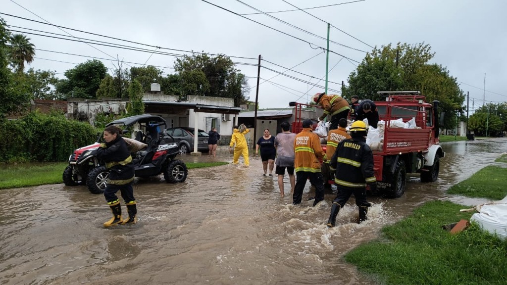 Por su parte, los Bomberos Voluntarios salieron con cinco dotaciones y 20 bomberos para colaborar en la asistencia y distribución de las bolsas de arena.