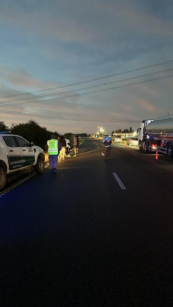 En este contexto, un camión Scania modelo 112 de color blanco, remolcando un acoplado cargado con sorgo, impactó por alcance a dos individuos cuyas identidades aún no han sido confirmadas debido a la gravedad de sus heridas. Posteriormente, un automóvil Chevrolet modelo Cruze de color gris, conducido por un hombre mayor y acompañado, también colisionó con uno de los cuerpos en la calzada, quedando detenido en la banquina.