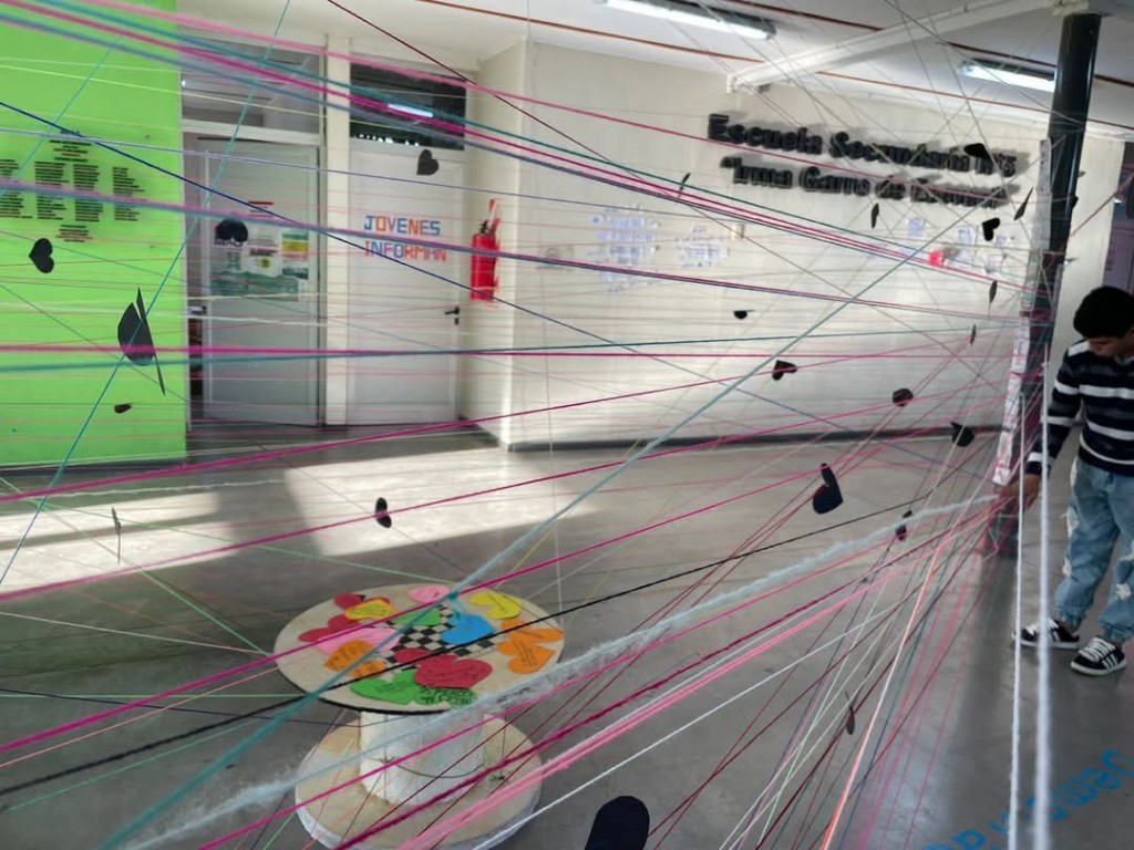 La actividad central tuvo lugar en el SUM de la institución, donde una intervención artística captó la atención de la comunidad educativa. La propuesta consistió en un tramado de hilos que simbolizaba el "enredo" emocional de las relaciones marcadas por la violencia. Los estudiantes dejaron mensajes en corazones negros, denunciando frases que reflejan control y agresión, como “no te hagas amigos” o “no hagas eso”. Luego, estos mensajes fueron transformados en frases motivadoras, buscando sanar y promover relaciones saludables. “Los chicos dejaron mensajes muy claros. La idea fue transmitir el impacto de esas palabras duras y luego trabajar en cómo sanar esas situaciones”, explicó Anderson.
