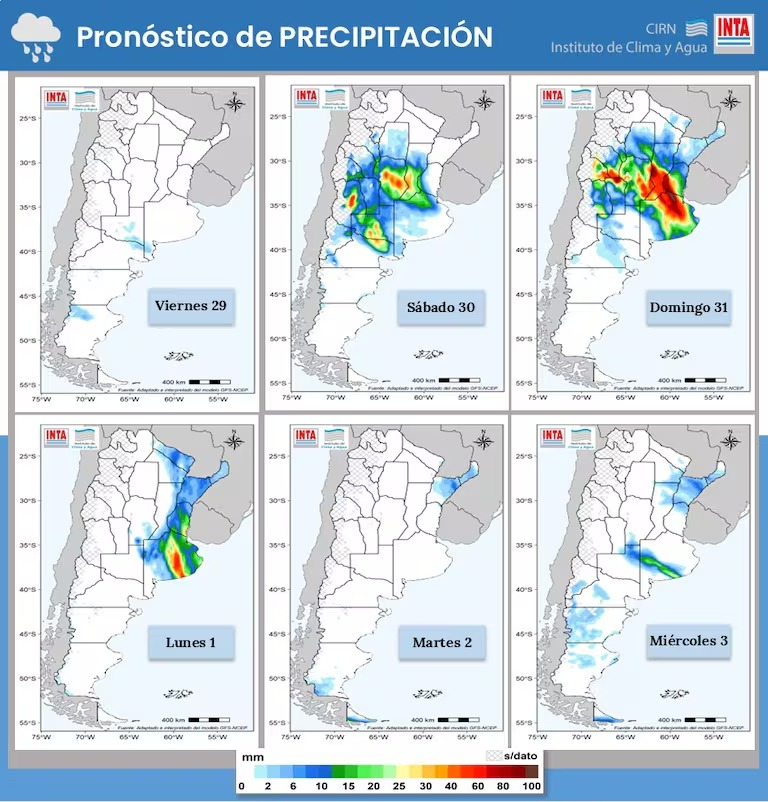 De acuerdo al pronóstico del Instituto de Clima y Agua del INTA, las lluvias comenzarán a intensificarse desde la tarde del sábado 30 y se prolongarán durante todo el domingo 31, con acumulados que podrían superar los 50 milímetros en varias localidades de la región.