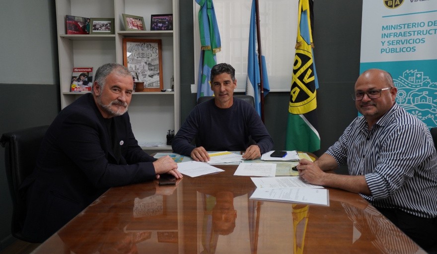 El intendente Mauro Poletti, junto al secretario de Obras Públicas, Leandro Torri, se reunieron con el subadministrador de la Dirección de Vialidad de la Provincia de Buenos Aires, Hernán Y Zurieta.