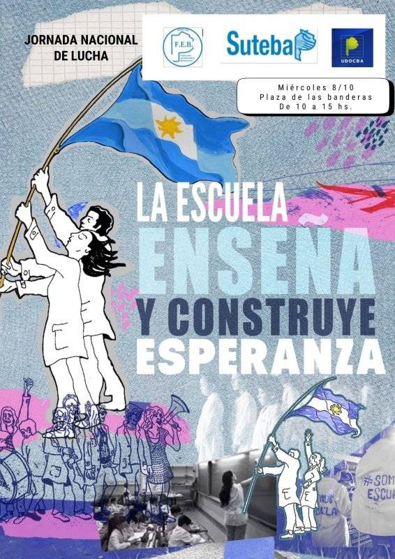 Este miércoles 8 de octubre, de 10 a 15 horas, la Plaza de las Banderas será el escenario de una clase abierta organizada por el Frente de Unidad Docente Bonaerense, en el marco de la "Jornada Nacional de Lucha Docente".