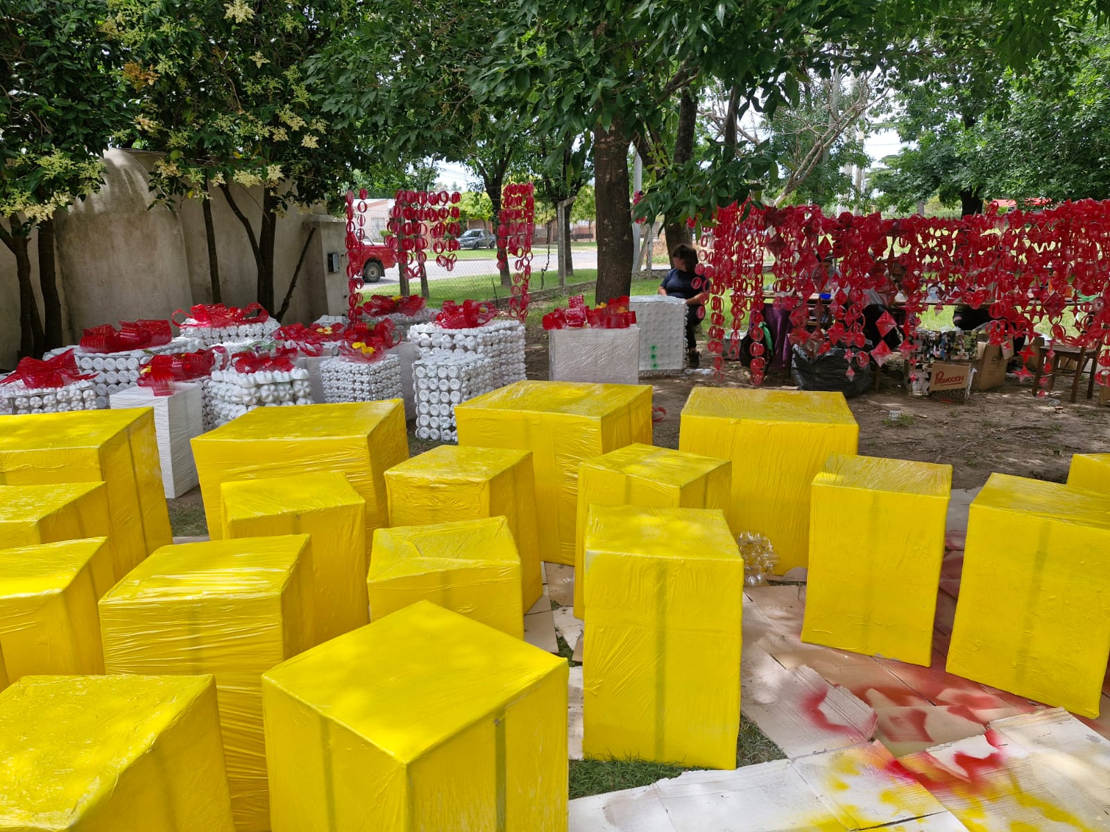 Cada pieza fue realizada con dedicación y paciencia. Las botellas llegaron desde hogares, comercios, escuelas, puntos de recolección y donaciones espontáneas.