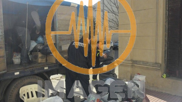 Personal de bomberos voluntarios de Ramallo entregó este martes las donaciones recibidas en la sede de Caritas Arrecifes.