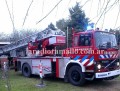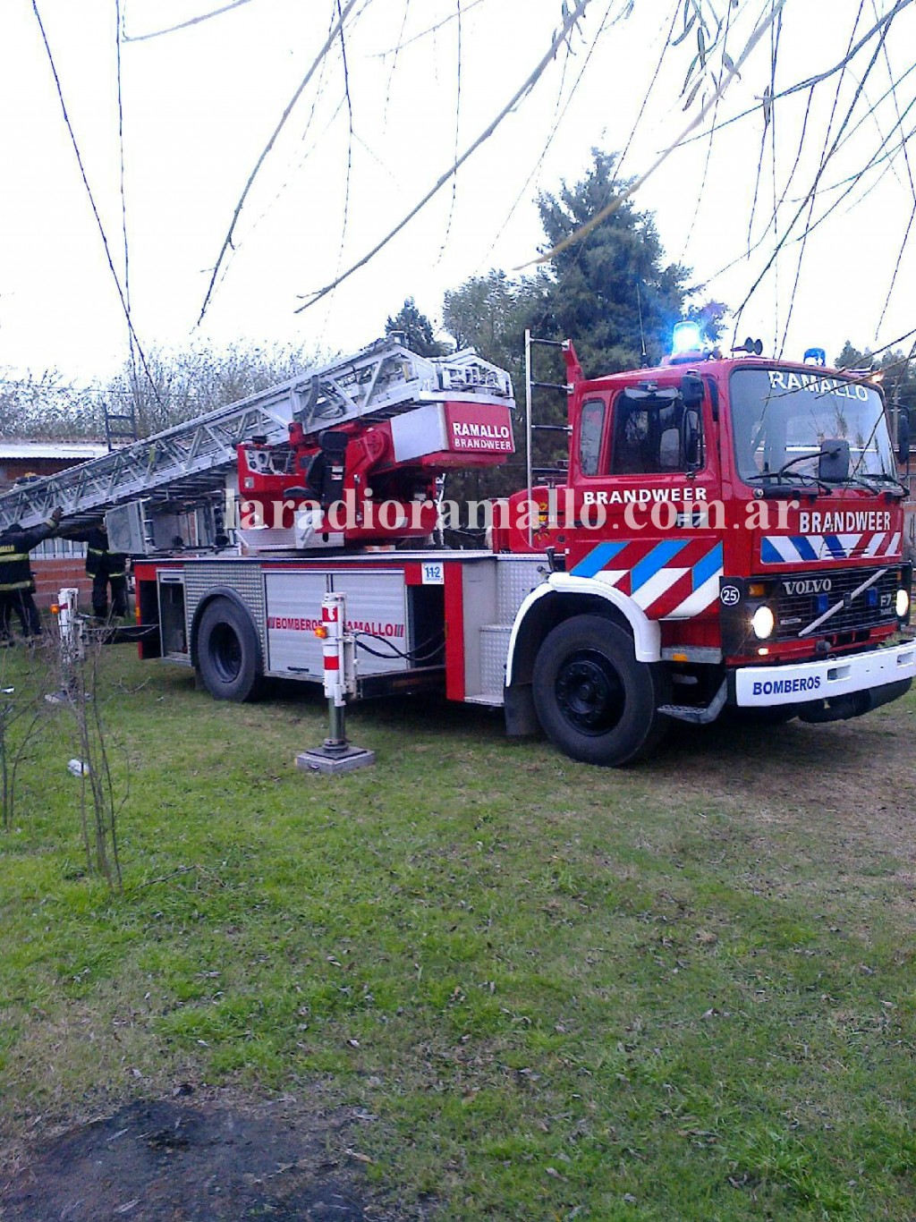 Rápidamente personal de bomberos llegó al domicilio de calle Sarmiento y organizó el dispositivo de rescate para poder subir al animal sano y salvo.