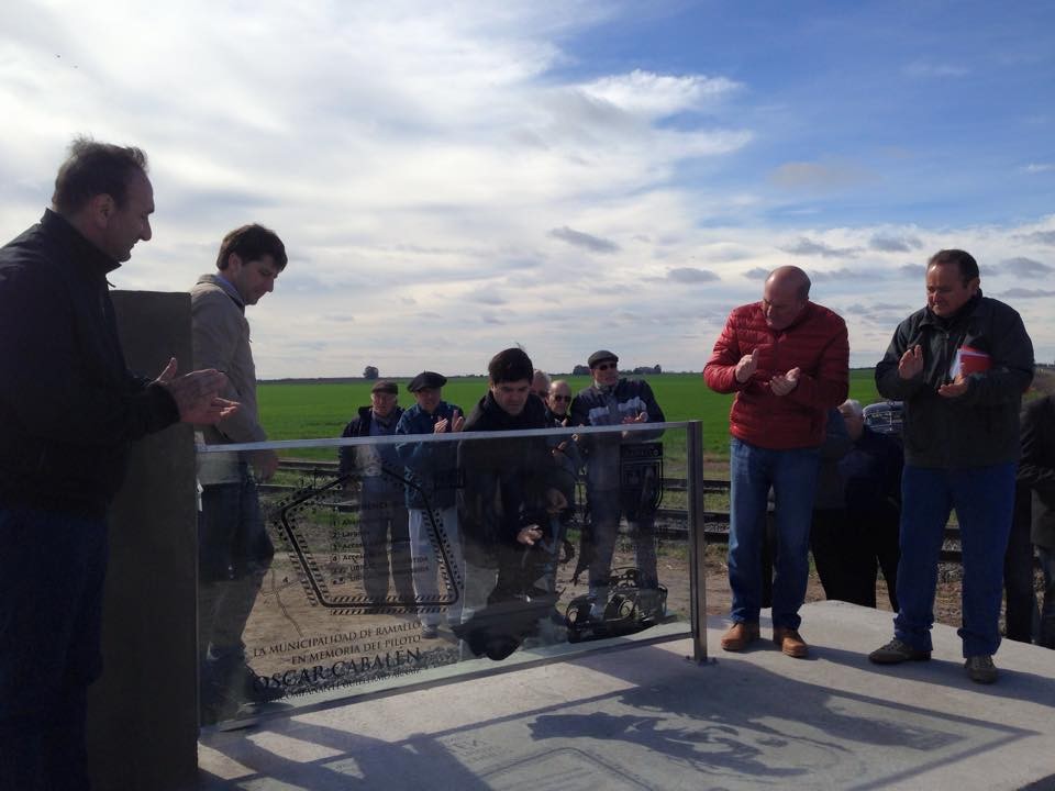 Hoy se realizó el homenaje al piloto Oscar Cabalén en el monolito situado en Camino de la Costa en su intersección con el camino de acceso al parque industrial Comirsa. El mismo fue llevado adelante desde la Municipalidad de Ramallo con iniciativa del vecino Oscar Maggiori.