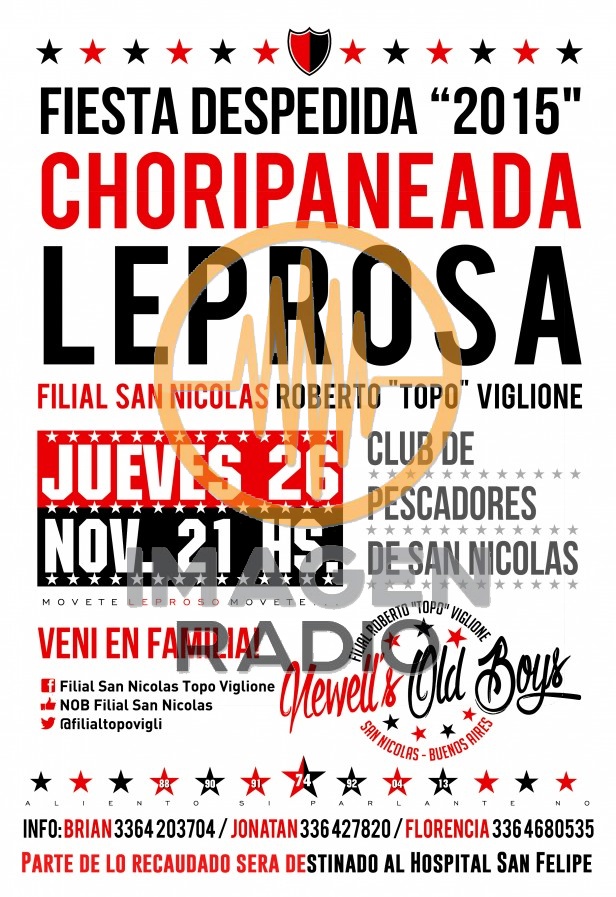 Con el objetivo de despedir este 2015, la filial de San Nicolás del Club Atlético Newell's Old Boys Roberto “Topo” Viglione organizada una choripaneada leprosa.