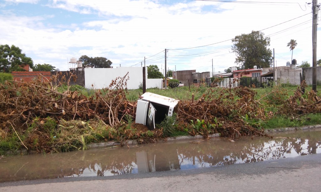 Alli como se puede observar hay pastos altos, ramas que han quedado en el lugar y hasta una cocina en desuso que algún desaprensivo arrojó en ese sector de la ciudad de Ramallo.