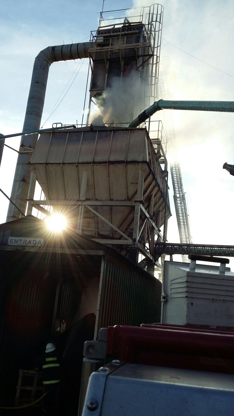 Durante el momento de la intervención se produjeron explosiones por la acumulación de gases sin producir lesiones a los bomberos. “La tolva tenía madera en polvo por lo que entró en combustión y estamos tratando de establecer cual fue el origen del fuego” concluyó el jefe de Bomberos Ramallo.