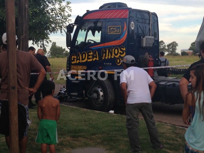 Una moto que circulaba con dos personas choco contra un camion que doblaba en la calle Guerrico. Como consecuencia del fuerte impacto la acompañante del rodado menor falleció en el lugar.