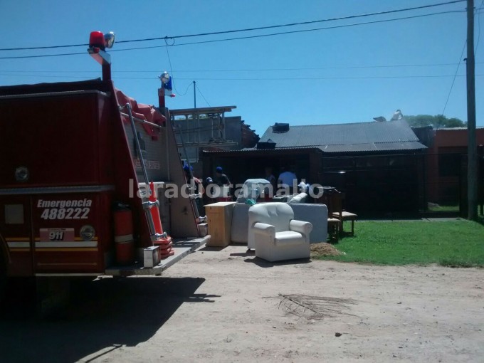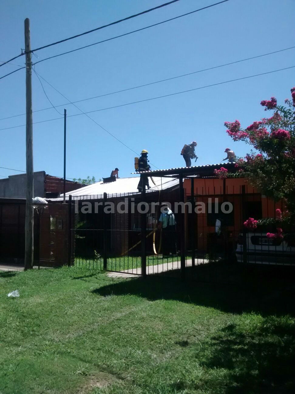 En la casa se encontraba un empleado colocando una membrana en el techo cuando por causas que se tratan de establecer la manta aislante tomó fuego. El rápido accionar de Bomberos Voluntarios evitó una destrucción mayor.