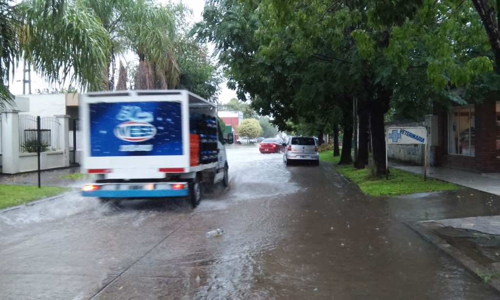 La intensidad de las lluvias en las primeras horas de la mañana provocó que calles como Rivadavia en Villa Ramallo quedaran completamente tapadas de agua.