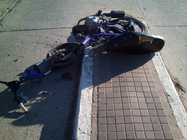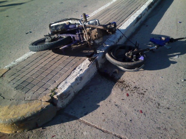 Alrededor de las 18:00 horas de este jueves, en Avda. San Martín y calle Rioja, por causas que se tratan de establecer, chocaron una moto de 110 cc y un automóvil Chevrolet Corsa. En la moto circulaba una pareja de menores, ambos de 17 años, que sufrieron heridas de gravedad, fracturas de consideración, pero sin riesgo de vida. Los jóvenes fueron trasladados al hospital José M. Gomendio y luego a la clínica de la U.O.M. El automóvil era conducido por un mayor de 24 años que resulto ileso. Pudo ser una tragedia, el estado en que quedo la moto es una muestra más que elocuente.