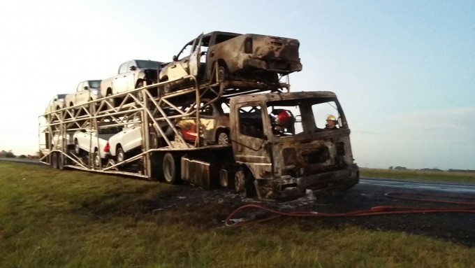 Hace instantes...Un camión y dos autos se incendiaron en el kilómetro 211 de la ruta 9 carril Buenos Aires-Rosario, a la altura de la estación de servicio YPF sin registrarse lesionados.