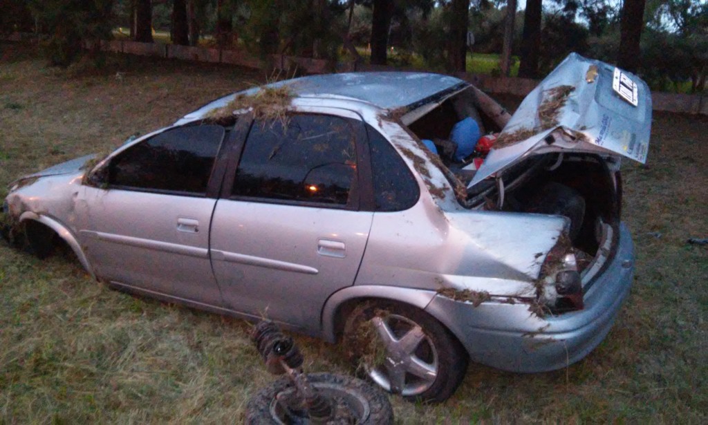 En horas de la tarde de este domingo un Chevrolet Corsa perdió el control y terminó al costado del camino luego de dar varios tumbos. Los tripulantes del rodado solo sufrieron lesiones leves informaron a este medio.