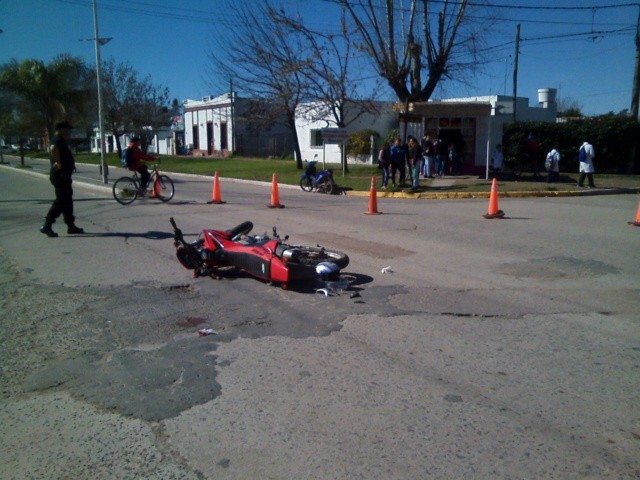 Alrededor de las 13:00 horas de este miércoles, en la intercepción de la Avenida San Martín y calle Jujuy de la ciudad de Ramallo, colisionaron, por causas que se tratan de establecer, un automóvil Peugeot, conducido por una mujer mayor de edad y una moto Honda de 250cc conducida por un hombre de 27 años. Como consecuencia del impacto el conductor de la moto fue trasladado al hospital José María Gomendio con un fuerte golpe en la cabeza, en tanto que la conductora del auto resulto ilesa.