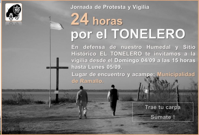 Por eso, te invitamos a participar de la Jornada de Protesta y Vigilia bajo el lema “24 horas por el TONELERO”, que tendrá lugar en la Municipalidad de Ramallo comenzando el Domingo 04 de Septiembre desde las 15:00 horas hasta el día lunes en la que le entregaremos al Intendente Mauro Poletti, un petitorio y las miles de firmas de los vecinos que juntamos en oposición al puerto.
