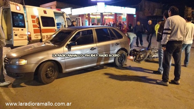 Por causas que se deberán establecer un Volkswagen Gol y una moto de 110 cl. colisionaron este jueves en pleno corazón de Villa Ramallo. Personal de bomberos voluntarios, de la policía de la provincia de Buenos Aires y de emergencia llegaron al lugar para asistir al motociclista que quedó inmovilizado y fue trasladado por bomberos voluntarios.