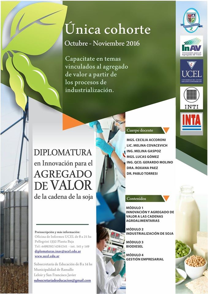 La Subsecretaría de Educación Municipal informó que se encuentra abierta la inscripción a las Diplomaturas “Innovación para el valor agregado a la cadena de la soja” y “buenas prácticas en laboratorios industriales” dictadas por la Universidad UCEL (Universidad del Centro de Educativo Latinoamericanos) en Ramallo.