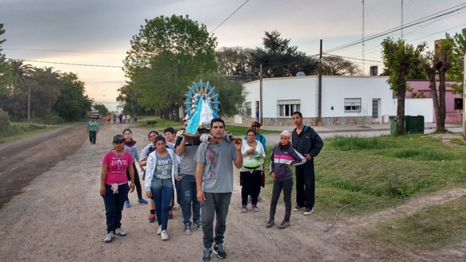 En la tarde de este sábado se podía observar a Peregrinos que con la imagen de la Virgen de Lujan marchaban por la ruta 1001.