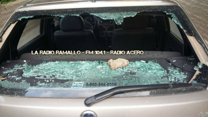 Un vandálico episodio que puso en riesgo la integridad física de los tres ocupantes que se movilizaban en el Fiat Palio color gris se produjo este martes en Avenida Jorge Newbery y Rivadavia de Villa Ramallo alrededor de las 19 horas.