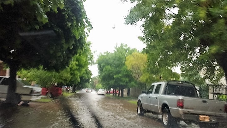 Algunos propietarios de negocios y vecinos alrededor de las 18 horas observaban con atención el escurrimiento de las aguas, ya que en determinados sectores había llegado hasta la mitad de la vereda.