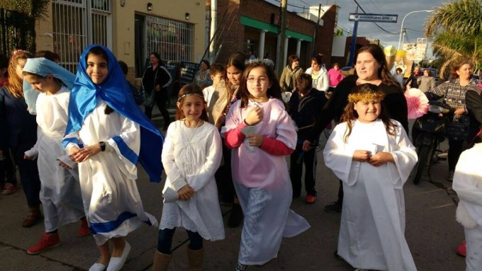 Una caminata que partió desde la avenida San Martín y Di Bacco en Villa Ramallo encabezada por niños y representantes de la iglesia Cristo Salvador se trasladó hasta la parroquia cantando y haciéndose sentir para conmemorar el día de todos los santos.