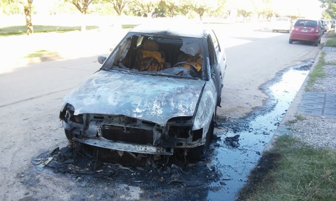 Más allá del esfuerzo realizado por los bomberos, las llamas ganaron el interior del rodado ante la mirada de los vecinos que se encontraban en el lugar.