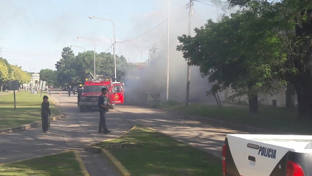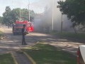El auto que circulaba por la arteria que se encuentra paralela a las vías del ferrocarril se prendió fuego, sus ocupantes bajaron del rodado y rápidamente llegó personal de bomberos voluntarios. No hubo lesionados.