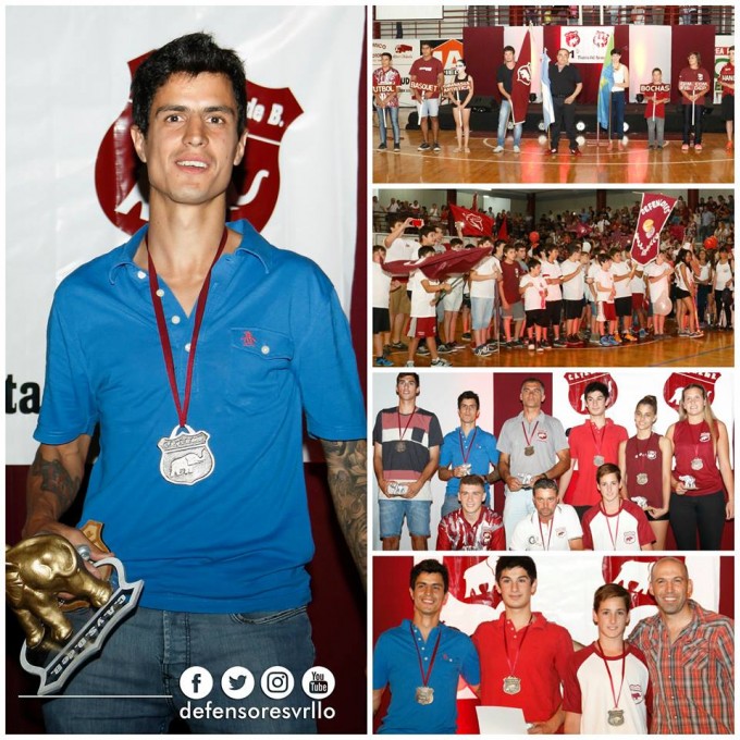 Anoche en estadio cubierto “Luis María Giordano”, con un imponente marco de público, se realizó 31ª edición de la Fiesta del Deporte del club Defensores de Belgrano. Hubo como siempre, varios momentos emotivos, reconocimientos, menciones, pero sin dudas el de mayor emoción fue la entrega de los Elefantes de Plata a los ganadores en cada disciplina y el Elefante de Oro, que este año fue para el Futbolista Juan Cruz Cartechini. Mayor marco de emoción le dio, que quién hizo entrega del mismo fue Rafael Delmoro, dirigente con una vastísima trayectoria en fútbol granate, que recibió su Elefante de Oro de manos del Presidente de la institución, Mauricio Dalledonne y luego le entregó a Juan Cruz el suyo, consagrándolo en gran ganador de la noche. FOTO: Gentileza "Lili" Dusso (Defensores).