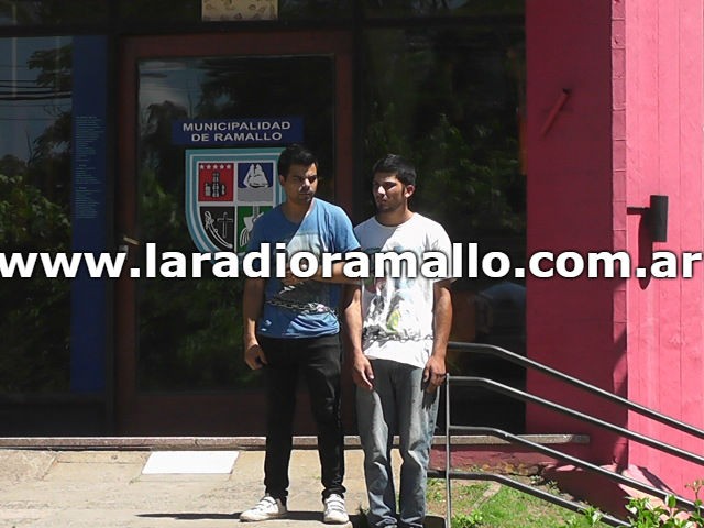 Emilio Constantini y Eric Bernacchia se encadenaron en la entrada de la Municipalidad de Ramallo reclamando un lugar para vivir.